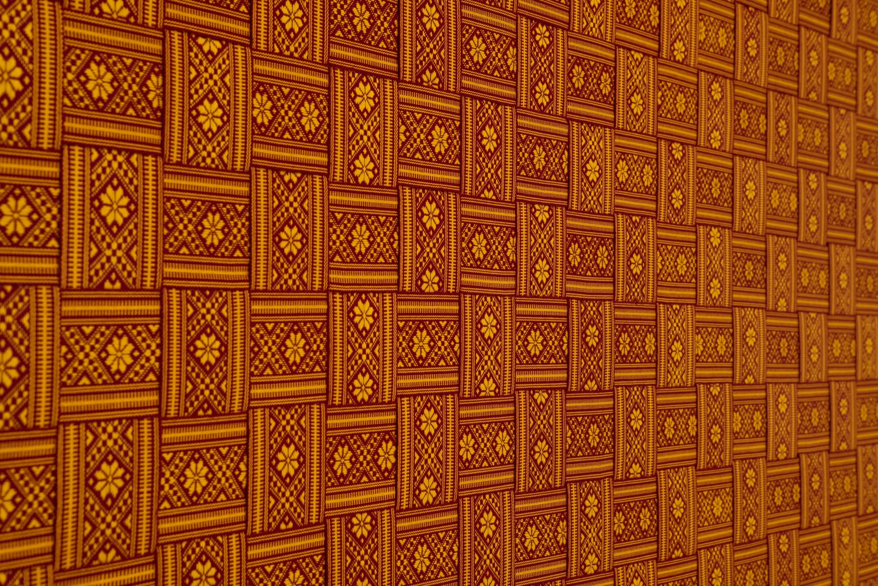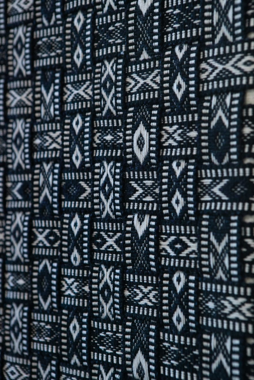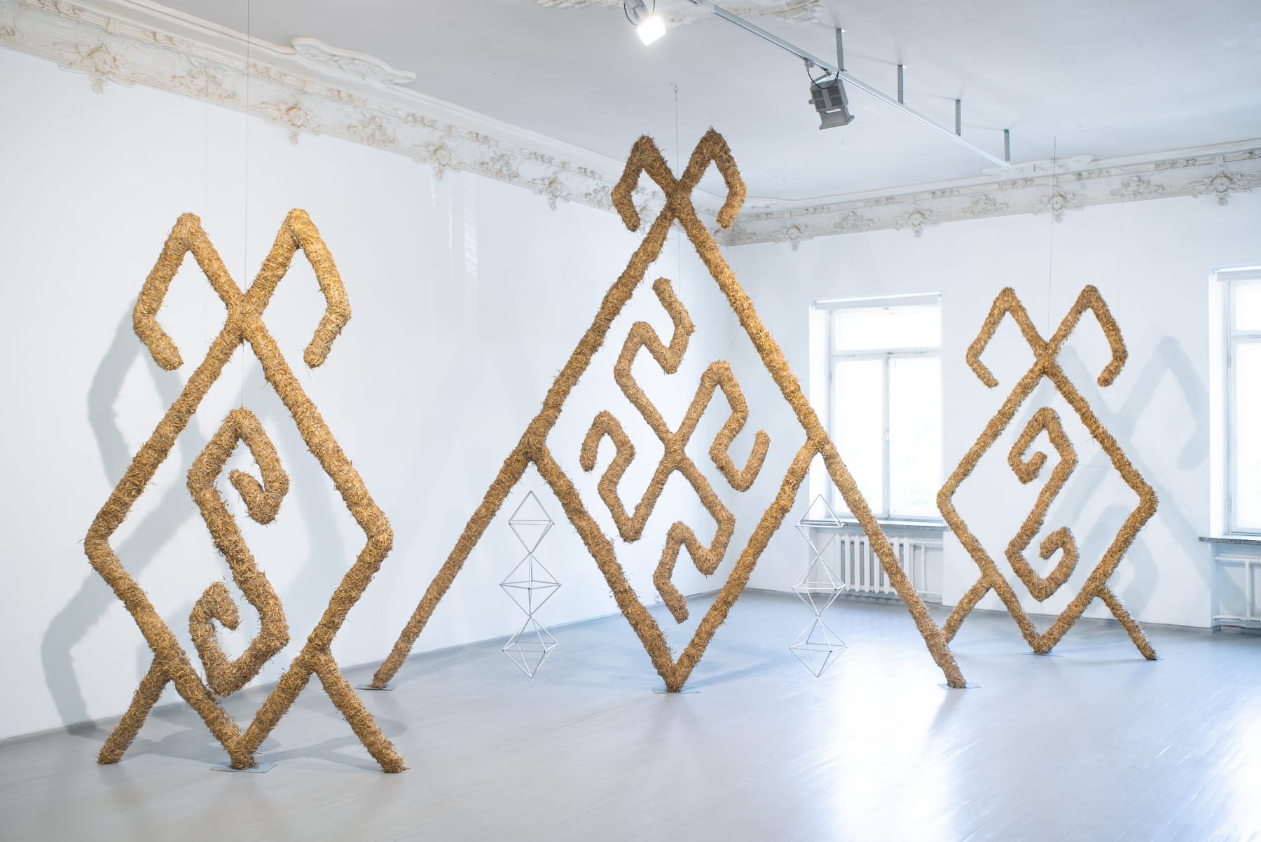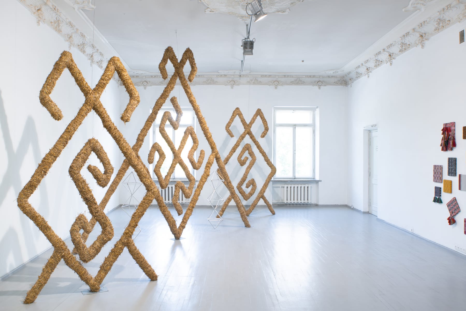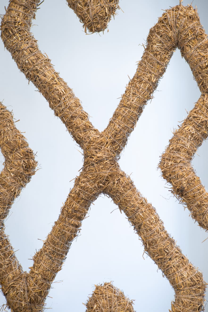 In the series ‘From.Between.To’, Šerpytytė employs ceremonial sashes specific to the Baltic region, overlapping and layering them across canvas stretchers. Using traditional materials, these works trace how the region’s communities intersect; motifs from one country are legible in another and reveal a call and response between nations that share a narrative of conflict. She also looks at how the repetition – or rhythm – of these patterns might be understood as a wider visual language, one that can communicate between cultures or regions familiar with war. Just as linguistic forms of expression facilitate a communal purpose, so visual matter can be incorporated into a process of mutual understanding.