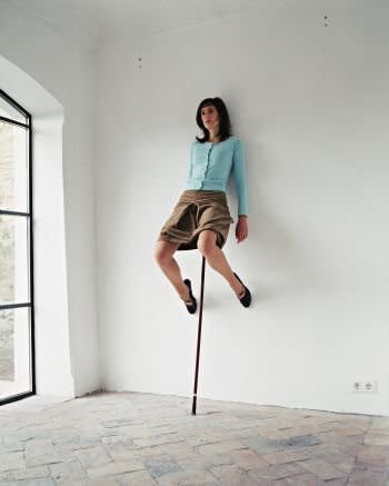 The 'one-minute sculptures'onoutdoor billboards are perceived not as a mediated intervention into public space, but rather as a 'life act', a narration, a new structuring of the 'incidental'. The invisible magical staging becomes a part of our present and creates a 'stage'.Even the so-called objects in this exhibition –the 'cucumber graces'and rampant sausages, broken refrigerators, basic furniture items turned into design objects and, not least, the archaicnatureof shatteredclay shards–all emerge out of play. This entourage sometimes evades 'acting'and for a while each sits on its own pedestal.