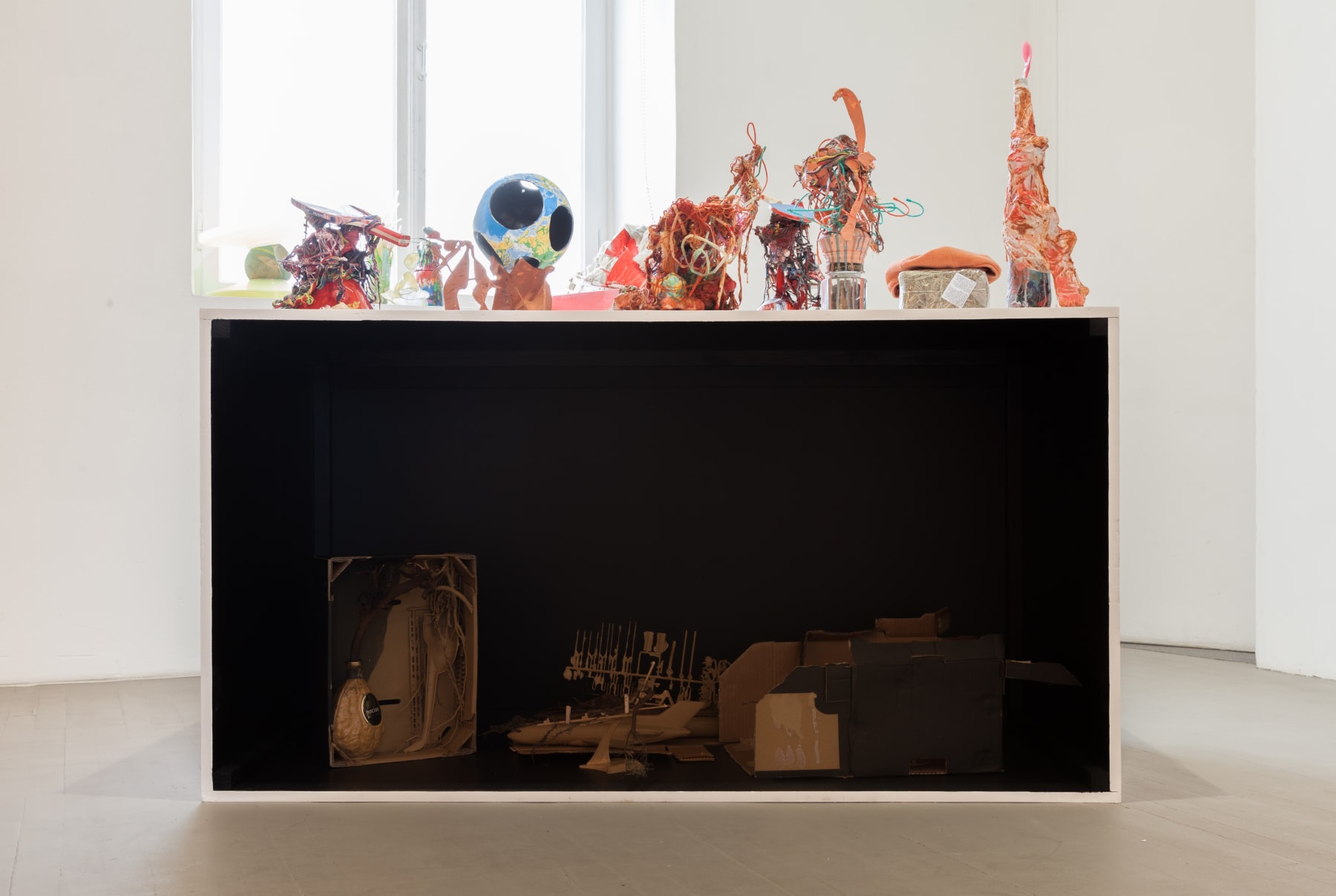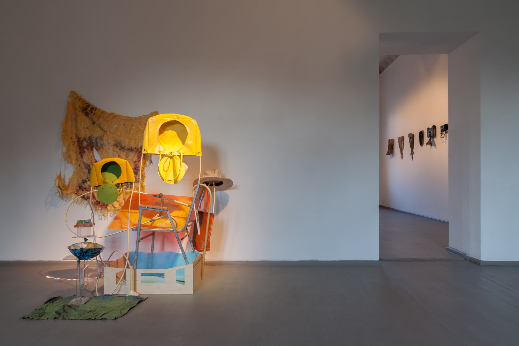 The exhibition is titled after the artist’s newest installation Echo Conditioner, which occupies the gallery’s largest hall. The name alludes to the process of repetition and constant reconsideration, through which an idea or an object is refined, clarified, and purified like air. With this work Bareikis continues his series of impressive and affective installations, constructed from various everyday use objects, waste material, and readymades, which have helped him become established and well-known on the international contemporary art scene.