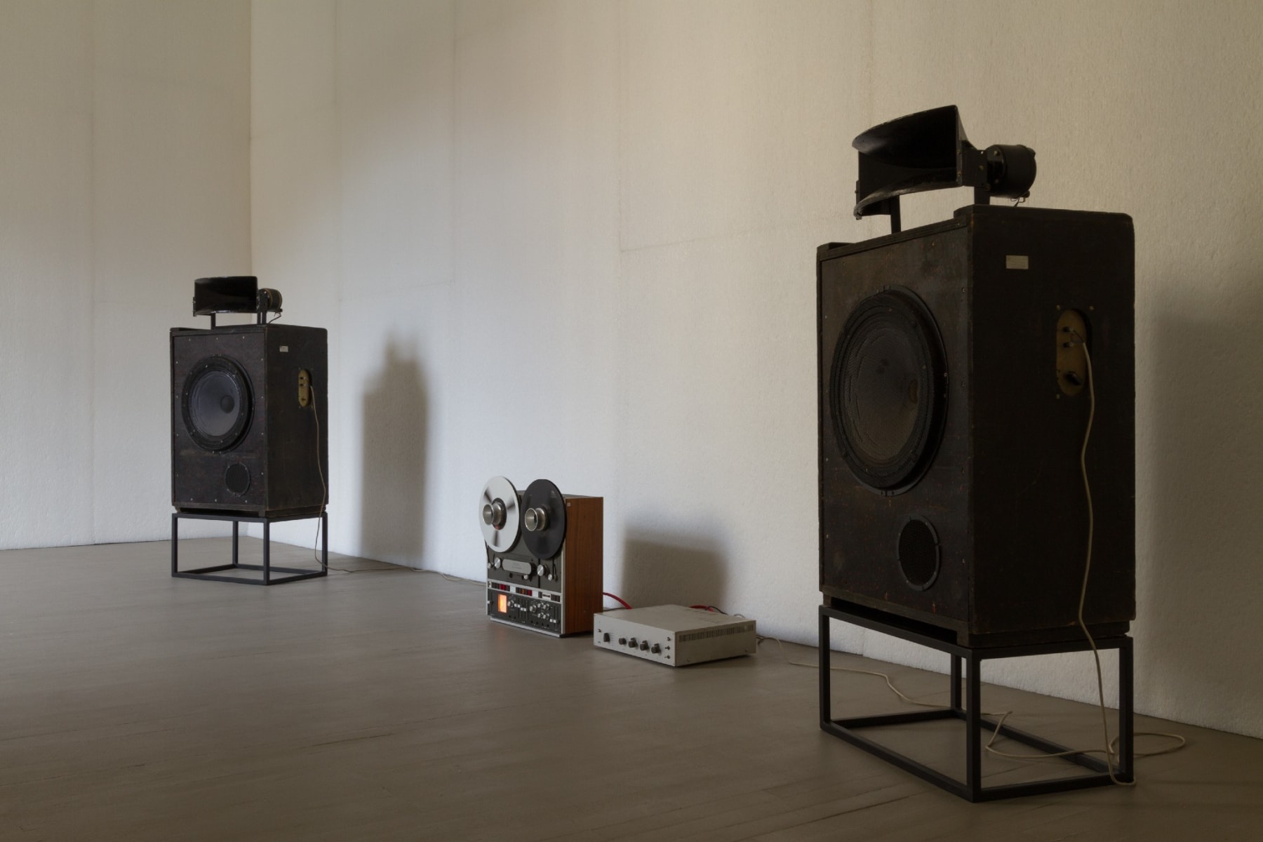 Narkevičius's sound installation Matching the TU-144 (2012) refers to the 1960s, when France, Great Britain, the USA and the USSR actively competed in their attempts to create a supersonic passenger aircraft. The Soviet Union built the Tupolev TU-144 plane, which exceeded the speed of sound in 1969 and became the fastest airliner in history. The human body physically feels sound waves before the mind perceives the source of where they come from and associates them with a certain familiar phenomenon or object. The sound of the TU-144 engine re-created in the gallery space revives the historical tensions and alludes to the competitive aspect of power.