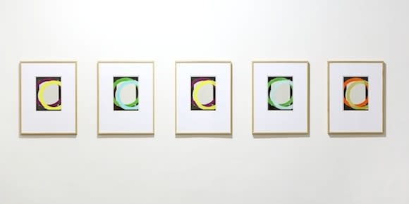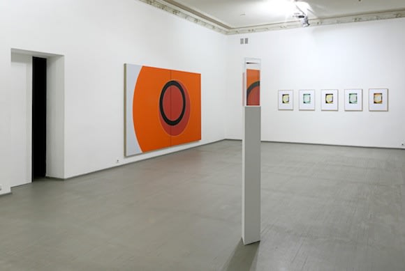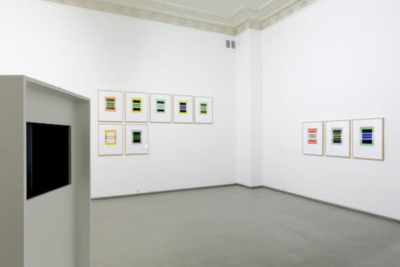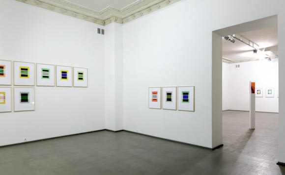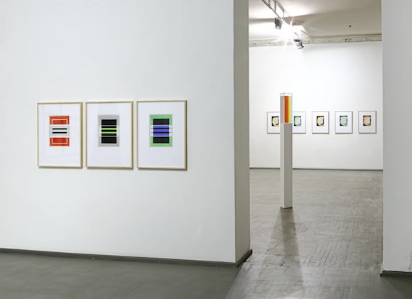 The exhibition also inclused 15 watercolour paintings. At first sight, Nussbaumer's watercolours look like prints, because their colour fields are even and have rigid contours. Only upon closer inspection does one spot irregularities, small discrepancies planned by the artist or caused by accidental pranks of water – a component of watercolour paint. In reality, behind this is deliberate modulation of the motif, an effort to highlight the shapes determined by colour variations and minute formal variance.