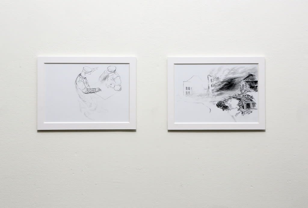 Mindaugas Lukošaitis is a universal artist of his generation. He has "inherited" all the best properties from the older "first" generation of Lithuanian interdisciplinary artists who made their debut in the late 1980s and early 1990s. However, Lukošaitis is famous not for complex installations or digital media, but for series of graphite drawings. In the context of the general trend of "installative interdisciplinarity", Lukošaitis' drawings were distinguished for their "archaic" form and "neotraditionalist" savour. Apparently, the graphite technique is very suitable for the scenes of violence from civil wars and other conflicts or episodes of political turmoil. Graphite technique has a natural connection with monochrome documentary photography, especially the low quality post-World War II Soviet propaganda pictures retouched with ink or graphite. Lukošaitis drawings are like "on-site reports", but the formal logic of the works transplants the "report" in another "metadiscourse" of contemporary art. The latest series of drawings by Lukošaitis titled Talvisota (Winter War) echoes and consolidates all of the above mentioned properties of the artist's series. The aesthetic refinement and appeal of the drawings in the series reaches almost perfect level of decorativeness. There is an impression that Lukošaitis is gradually cleansing his works of content and reaching towards some decorative or abstract ideal, the essence of drawing.