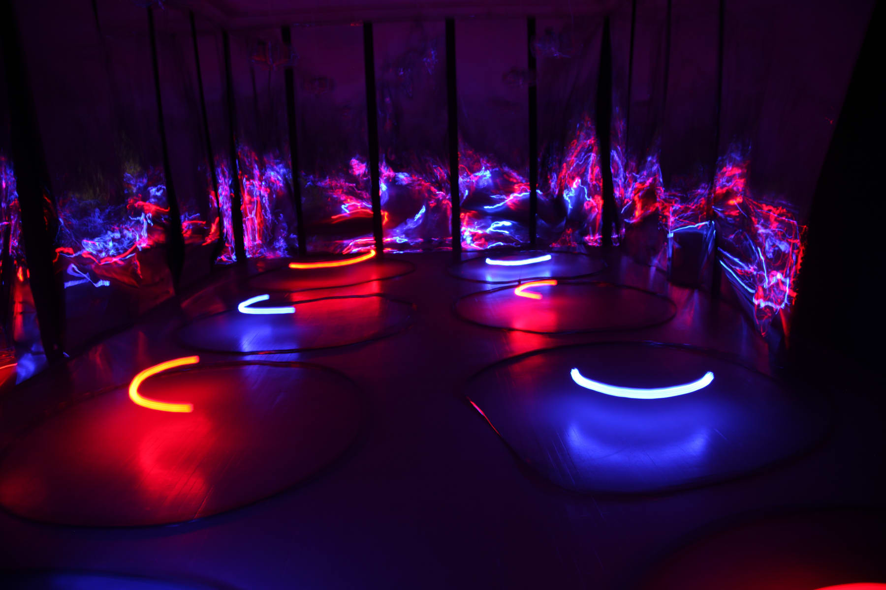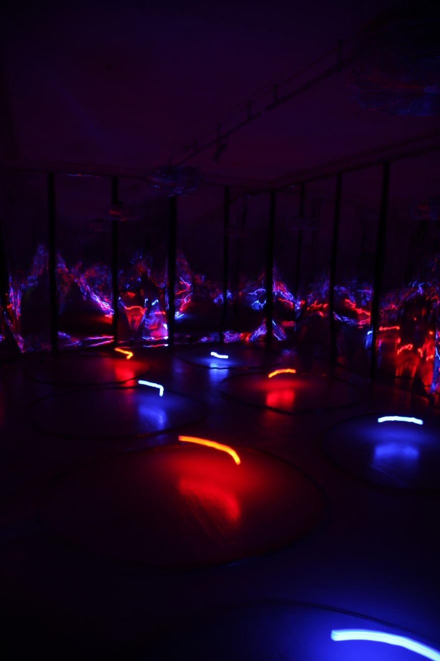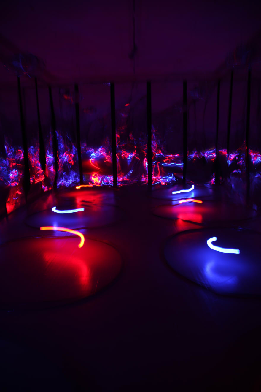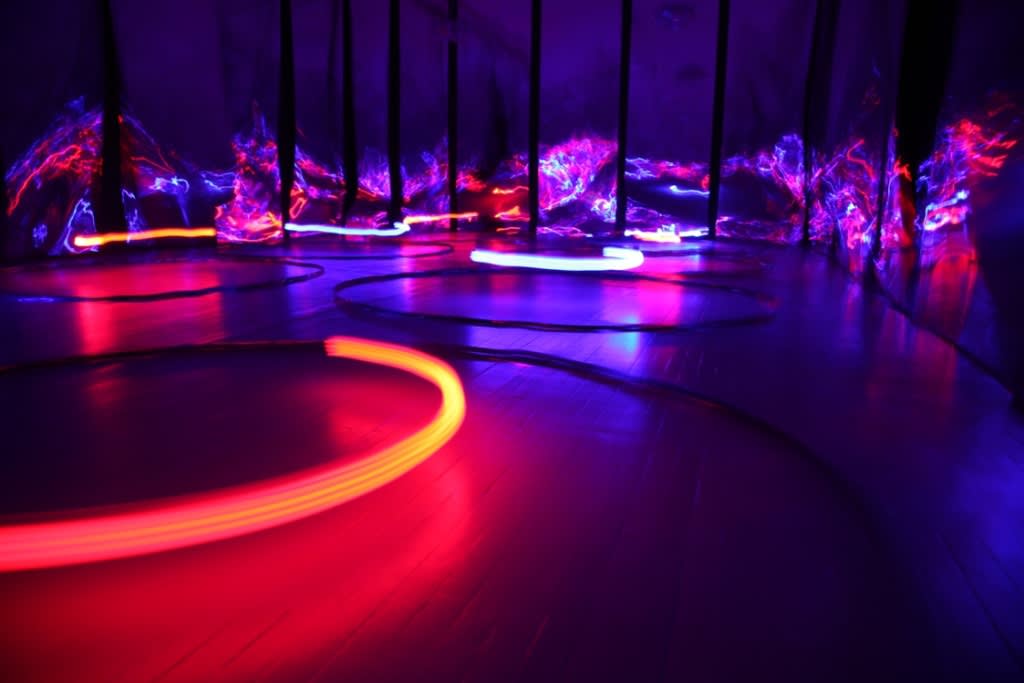 Žilvinas Kempinas is best known for his perception and space-altering installations, which invite the viewer to participate in the art event as it unfolds. Using magnetic tape as the main medium for his installations, Kempinas' art acquires multiple points of interpretation. Magnetic tape at once becomes a ready-made, while its use addresses the laws of physics and phenomenology. Through the concept of the line in space the artist’s works expand the boundaries of the medium of drawing: his installation Double O (2008) was exhibited in the MoMA’s show On Line: Drawing Through the Twentieth Century (2010) alongside with such artists as Pablo Picasso,Aleksandr Rodchenko, Alexander Calder, Marcel Duchamp, Vasily Kandinsky, Paul Klee, Kasimir Malevich and others.